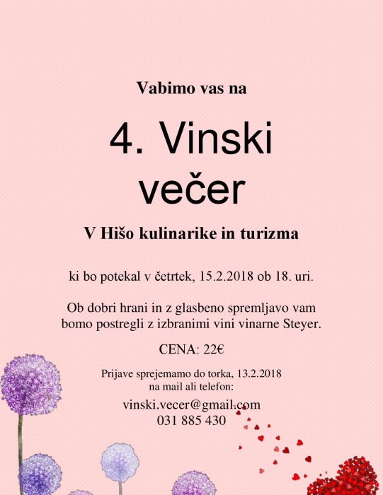 Zloženko s 5-hodnim menijem, ki ga bodo spremljala vina hiše dišečega traminca Steyer, si lahko