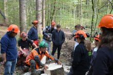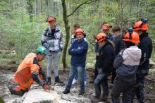 V ponedeljek 14. oktobra je skupina dijakov 4. c (kmetijsko podjetniški tehnik) pri prof. Antonu Goršinu v okviru praktičnega pouka gozdarstva spoznavala vrste negovalnih ukrepov pri negovanju gozdnih sestojev. Najprej so bile v učilnici na šolskem posestvu predstavljene vrste gojitvenih ukrepov pri negi gozda z demonstracijo potrebnega delovnega orodja in delovne varnostne opreme, zatem je sledil ogled izvedenega praktičnega dela v gozdu na terenu. V gozdu v bližini Stopič (Lošče) je bil izveden ogled nenegovanega gozdnega sestoja, kjer še po 20 letih skorajda ni zanimivih gospodarsko pomembnih drevesnih vrst (prisotne predvsem grmovne vrste in manj zanimive pionirske drevesne vrste) in ogled negovanega mlajšega gozdnega sestoja (gošče), kjer so učinki nege opazni v številčnosti in večji kvaliteti gospodarsko zanimivih vrst in tudi v večji biotski pestrosti. Zadnji del tega dne pa je bil namenjen praktični demonstraciji poseka drevesa, ki ga je v šolskem gozdu v bližini Drganjih sel pod mentorstvom prof. Matjaža Turka izvedel Gregor Bohte, dijak 4. c. Po uspešno izvedenem poseku je prof. Turk udeležencem podrobneje razložil pravila sečnje, opozoril na pogoste napake pri sečnji in na nevarnosti, ki pretijo pri delu v gozdu.